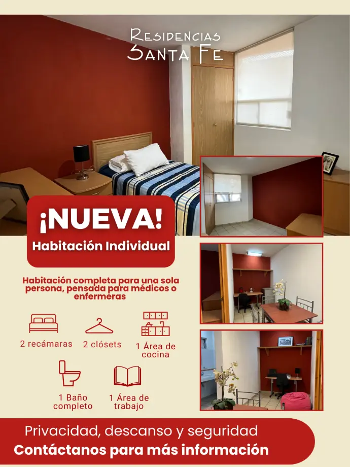 Ideal para residentes de la salud o estudiantes que busquen un espacio personal.